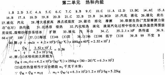 41、(09河池)安全、清洁、方便的太阳能越来越受到人们的重视和广泛利用.如图2-12所示,一太阳能热水器内装有质量为250kg,温度为20℃的水,在阳光照射一段时间后,水温升高到80℃.[c水=4.2×103J/(kg·℃)]