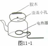 5、(09潍坊)电热水壶是我们熟悉的家用电器,如图11-1所示从电热水壶的结构和使用来看,它涉及到很多物理知识。下面说法中正确的是