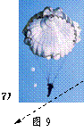 17.如图9所示跳伞运动员正沿着图中方向匀速直线运动,请你画出此时运动员所受的力的示意图。