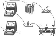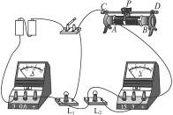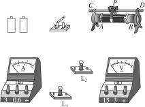 解析:滑动变阻器只用于改变灯L2的亮度,所以应与灯L2串联。本题中要求滑片向左移动,灯L2变亮,即向左移动要使电阻减小,则接AC或AD都符合要求。