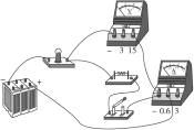 4.如图7-1-3所示为某同学测定小灯泡电阻的实物连接图。在电压表尚未接入电路之前,已存在两处明显的连接错误,请你指出: