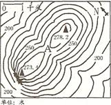 (4)用等高线地形图把高低起伏的地形在平面上表示,图中的A处表示 ▲