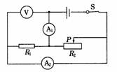 12、如图所示,电源电压保持不变,当滑动变阻器滑片P向右滑动时,电表示数的变化情况是