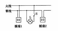 A、电灯L B、插座1 C、插座2 D、开关S