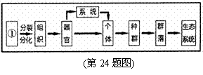 24.小科对“生命系统的结构层次”作如图所示总结: