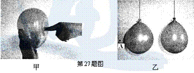 (2)图乙中两只气球自由悬挂在空中,用粗吸管对准A点沿垂直于纸面方向用力吹气,可观察到两气球