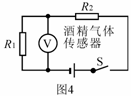 从2011年5月1日起,驾驶员酒醉后驾车要负刑事责任。酒精测试仪可检测驾驶员是否酒后驾车,如图4所示是它的原理图。图中R1为定值电阻,酒精气体传感器R2的电阻值随酒精气体浓度的增大而减小,如果驾驶员呼出的酒精气