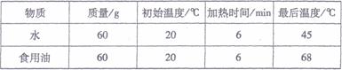 (1)从表中数据可知,水和食用油的质量_________(选填“相同”或“不相同”),加热结束时,食用油的温度比水温度_____(选填“高”或“低”).