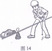 (2)如图l4,画出人对杠杆作用力F的力臂L和物体A所受重力G的示意图。
