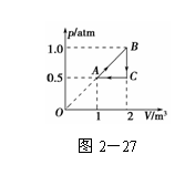 4. 如图2-27所示,一定质量的理想气体从状态A变化到状态B,再由