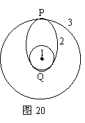 发射地球同步卫星时,先将卫星发射至近地圆轨道1,然后经点火,使其沿椭圆轨道2运行,最后再次点火,将卫星送入同步圆轨道3,轨道1、2相切于Q点,轨道2、3相切于P点,如图20所示。则在卫星分别在1、2、3轨道上正常运行时,以下说法正确的是:( D )