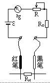 1. 图16为万用表欧姆挡的原理示意图,其中电流表的满偏电流为300mA,内阻rg=100W,调零电阻最大阻值R=50kW,串联的固定电阻R0=50W,电池电动势e=1.5V.用它测量电阻Rx,能准确测量的阻值范围是