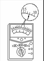 4. 某人用万用电表按正确步骤测量一电阻阻值,指针指示位置如图19,则这电阻值是_______.如果要用这万用电表测量一个约200欧的电阻,为了使测量比较精确,选择开关应选的欧姆挡是_______.