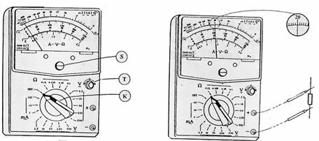 (1)图20中左图为多用电表的示意图,其中S、K、T为三个可调节的部件,现用此电表测量一阻值约为20-30