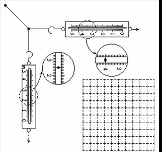 1.将橡皮筋的一端固定在A点,另一端拴上两根细绳,每根细绳分别连着一个量程为5牛、最小刻度为0.1牛的弹簧测力计.沿着两个不同的方向拉弹簧测力计.当橡皮筋的活动端拉到O点时,两根细绳相互垂直,如图21所示.这时弹簧测力计的读数可从图中读出。
