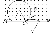 解析:电子在磁场中运动,只受洛仑兹力作用,故其轨迹是圆弧的一部分,又因为f⊥v,故圆心在电子穿入和穿出磁场时受到洛仑兹力指向交点上,如图中的O点,由几何知识知,AB间圆心角θ=30°,OB为半径。