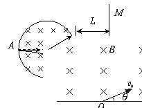 粒子擦着上板从左边穿出时,圆心在O'点,有r2=L/4,又由r2=mv2/Bq=L/4得v2=BqL/4m