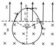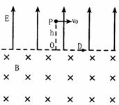 面为垂直纸面的平面,电场方向与界面垂直,磁场方向垂直纸面向里,电场强度大小 E = 100V / m 。宇宙人位于电场一侧距界面为 h=3m 的P点,O为P点至界面垂线的垂足,D点位于纸面上O点的右侧,OD与磁场的方向垂直。垒球的质量 m = 0.1kg ,电量 q=一0.05c 。宇宙人从 P 点以初速度 v0 = 10m / s 平行于界面投出垒球,要使垒球第一次通过界面时就击中D点,求:(计算结果保留三位有效数字)