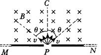 4..如图所示,在屏MN的上方有磁感应强度为B的匀强磁场,磁场的方向垂直纸面向里.P为屏上的一个小孔.PC与MN垂直.一群质量为m、带电量为-q的粒子(不计重力),以相同的速率v,从P处沿垂直于磁场的方向射入磁场区域.粒子入射方向在与磁场B垂直的平面内,且散开在与PC夹角为θ的范围内,则在屏MN上被粒子打中的区域的长度为