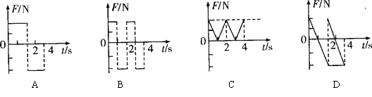 矩形导线框abcd放在匀强磁场中,在外力控制下静止不动,磁感线方向与线圈平面垂直,磁感应强度B随时间变化的图象如图(乙)所示.t=0时刻,磁感应强度的方向垂直纸面向里,在0-4 s内,线框ab边受力随时间变化的图象(力的方向规定以向左为正方向)可能是下图中的