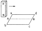 如图所示,粗糙水平桌面上有一质量为m的铜质矩形线圈。当一竖直放置的条形磁铁从线圈中线AB正上方等高快速经过时,若线圈始终不动,则关于线圈中感应电流的方向及线圈受到的摩擦力的方向判断正确的是( )