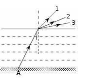 4.如图所示,置于水底A点的光源发出一细束复色光射向水面,经折射后分裂成三束,下列有关这三种光的性质的描述正确的是