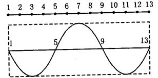 7.在均匀介质中,各质点的平衡位置在同一直线上,相邻两个质点间的距离为a,t=0时振动从质点1开始并向右传播,其振动初速度方向竖直向上.经过时间t,前13个质点第一次形成如下图所示的波形,则该波的周期T、波速v分别为