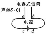 向振动的镀上金属层的振动膜a构成一个电容器,a、b分别通过导线