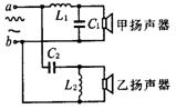 固有频率分别处于高音、低音频段,分别称为高音扬声器和低音扬声器.音箱要将扩音机送来的含有不同频率的混合音频电流按高、低频段分离出来,送往相应的扬声器,以便使电流所携带的音频信息按原比例还原成高、低频的机械振动.图为音箱的电路图,高、低频混合电流由a、b端输入,L1和L2是线圈,C1和C2是电容器