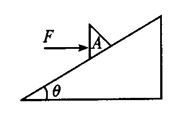10.质量为m的三角形木楔A置于倾角为θ的固定斜面上,它与斜面间的动摩擦因数为μ,一水平力F的作用在木楔A的竖直平面上,在力F的推动下,木楔A沿斜面以恒定的速度a向上滑动,则F的大小![]()