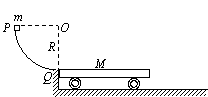 如图所示,PQ是固定在竖直平面内半径为R的四分之一光滑圆弧轨道。一辆质量为M的小车放在光滑水平面上。小车的左端上表面与圆弧轨道底端相切。一质量为m的小物块从圆弧轨道顶端由静止开始滑下,冲上小车后,滑到小车右端时恰好与小车保持相对静止。已知M = 9m,重力加速度为g.从小物块开始下滑到与小车保持相对静止的整个过程中,小物块与小车组成的系统损失的机械能为