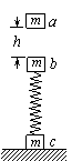 如图所示,质量均为m的两物体b、c分别与轻质弹簧的两端相连接,将它们静止放在地面上。弹簧的劲度系数为k。一质量也为m的小物体a从距b物体h高处由静止开始下落。a与b相碰后立即粘在一起向下运动,以后不再分开。