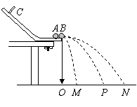 ① 实验装置如下图所示。先不放B球,使A球从斜槽上某一固定点C由静止滚下,落到位于水平地面的记录纸上留下痕迹。再把B球静置于水平槽前端边缘处,让A球仍从 C处由静止滚下,A球和B球碰撞后分别落在记录纸上留下各自落点的痕迹。记录纸上的O点是重锤所指的位置,M、P、N分别为落点的痕迹。未放B球时,A球落地点是记录纸上的 点。