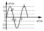 (2)如图所示为一列简谐横波t=0时刻的波动图象,已知波沿x轴正方向传播,波速大小为0.4m/s。则在图示时刻质点a、b所受的回复力大小之比为________ ,此时刻起,质点c的振动方程是:__