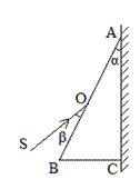 ,紧贴直角边AC是一块平面镜,一光线SO射到棱镜的AB面上,适当调整SO的方向,当SO与AB成