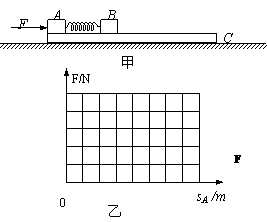 (1) 若弹簧的劲度系数为k=200N/m,以作用力F为纵坐标,A移动的距离为横坐标,试在图乙的坐标系中作出推力F随A位移的变化图线。
