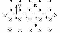 MN板两侧都是磁感强度为B的匀强磁场,方向如图,带电粒子从a位置以垂直磁场方向的速度v开始运动,依次通过小孔b、c、d,已知ab = bc = cd,粒子从a运动到d的时间为t,则粒子的比荷为