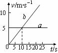 如图所示,两辆车a、b分别在同一直车道上并排行驶,t=0时刻两车都在同一位置,由图可知: