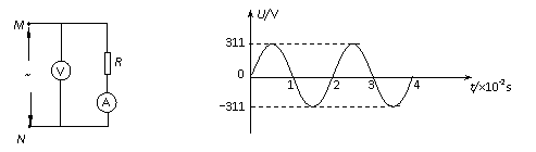 在电路的MN间加一如图所示正弦交流电,负载电阻为100Ω,若不考虑电表内阻对电路的影响,则交流电压表的读数是