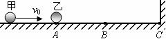 ⑵ 在光滑的水平面上,质量为m1的小球甲以速率v0向右运动。在小球甲的前方A点处有一质量为m2的小球乙处于静止状态,如图所示。甲与乙发生正碰后均向右运动。乙被墙壁C弹回后与甲在B点相遇,BC=AB。已知小球间的碰撞及小球与墙壁之间的碰撞均无机械能损失,且小球与墙壁碰撞的时间可忽略不计,求甲、乙两球的质量之比m1:m2。