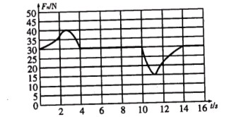 (2)(6分)在电梯中,把一重物置于台秤上,台秤与压力传感器相连,电梯由静止开始竖直上升过程中,传感器所受的压力与时间的关系(FN-t)图象如图所示,g取10m/s2由图象可知