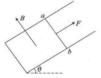 18.(16分)如图所示,倾角θ=30°,宽度L=1m的足够长的U形平行光滑金属导轨,固定在磁感应强度B=1T,范围充分大的匀强磁场中,磁场方向与导轨平面垂直.用平行于导轨、功率恒为6W的牵引力F牵引一根质量m=O.2kg,电阻R=1欧放在导轨上的金属棒ab,由静止开始沿导轨向上移动(ab始终与导轨接触良好且垂直),当ab棒移动2.8m时获得稳定速度,在此过程中,金属棒产生的热量为5.8J( 不计导轨电阻及一切摩擦,取g=10m/s2 ),求: