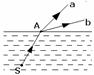 如图所示,水下光源S向水面A点发射一束光线,折射光线分成a,b两束,则