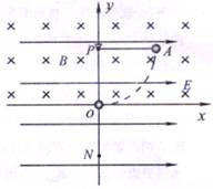 内存在水平向右的匀强电场,场强大小E=10N/c,在y≥0的区域内还存在垂直于坐标平面向里的匀强磁场,磁感应强度大小B=0.5T一带电量
