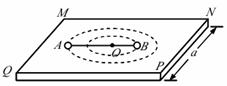 (14分)如图所示,一水平光滑、距地面高为h、边长为a的正方形MNPQ桌面上,用长为 L 的不可伸长的轻绳连接质量分别为mA 、mB
