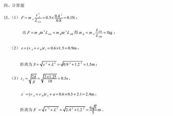 (2)若当绳子与MN 平行时突然断开,则经过1.5s 两球的距离;