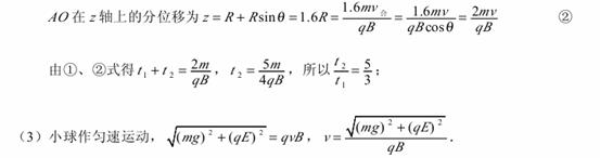 (3)若电场和磁场同时存在,且B和E的方向分别与x轴和y轴正方向相同时,有一质量为m、带电量为+ q的带电小球在 yOz平面内做匀速率运动,试判断该小球的运动性质并计算其运动速率.