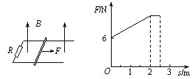 15.(16分)如图(甲)所示,一对平行光滑轨道放置在水平面上,两轨道相距l=1m,两轨道之间用R=3Ω的电阻连接,一质量m=0.5kg、电阻r=1Ω的导体杆与两轨道垂直,静止放在轨道上,轨道的电阻可忽略不计。整个装置处于磁感应强度B=2T的匀强磁场中,磁场方向垂直轨道平面向上,现用水平拉力沿轨道方向拉导体杆,拉力F与导体杆运动的位移s间的关系如图(乙)所示,当拉力达到最大时,导体杆开始做匀速运动,当位移s=2.5m时撤去拉力,导体杆又滑行了一段距离s' 后停下,在滑行s' 的过程中电阻R上产生的焦耳热为12J。求: