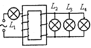 一台理想变压器的变压比为3:1,图中四个完全相同的电灯,若L2、L3、L4正常发光,则L1一定( )
