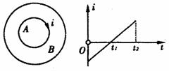 5.如图5所示,两个闭合圆形线圈A、B的圆心重合,放在同一水平面内,线圈A中通以如下面右图所示的变化电流,t=0时电流方向为顺时针(如图中箭头所示).在